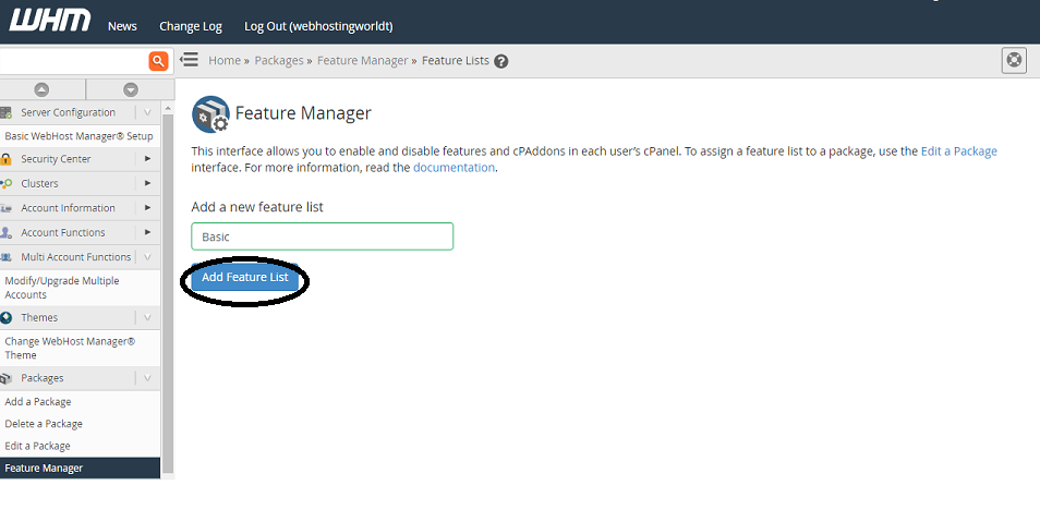 The feature list will be saved as yourcpaneluser_Basic where yourcpaneluser is your actual cPanel reseller account.